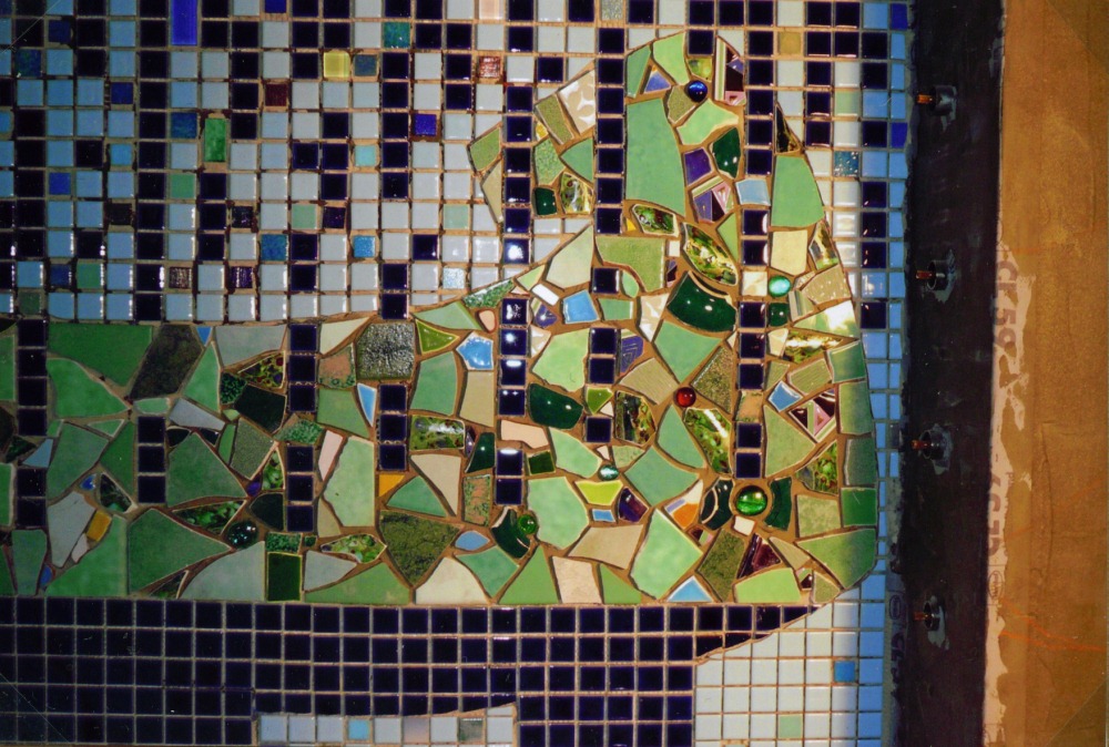 ...und eingeklebt. Für jeden Arbeitsschritt brauche ich ca 3 Stunden. Endlich sind die Wände der Dusche fertig.